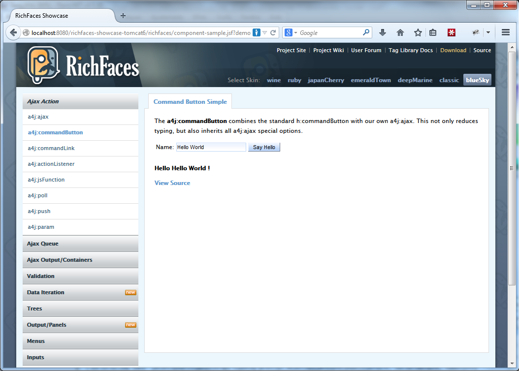 Une fois déployé dans JBoss, le showcase RichFaces est disponible à cette URL : http://localhost:8080/richfaces-showcase-tomcat6/